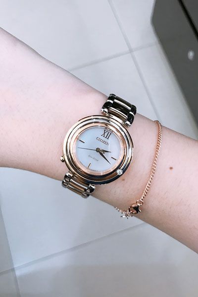 Đồng hồ Citizen EM0553-85A đính Kim Cương - Dây kim loại - Size 32.5 m